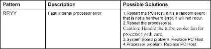เมื่อทำการสแกน โฮสต์พีซีจะวางสาย ผู้ปฏิบัติงานจะต้องเปิดเครื่องโฮสต์อีกครั้ง อื่นๆ เมื่อเริ่มโฮสต์ทุกเช้า ไม่สามารถบูตได้เป็นระยะๆ โฮสต์พีซีปรากฏข้อผิดพลาดร้ายแรง ไฟ LED การวินิจฉัยบนแผงด้านหน้าของโฮสต์ปรากฏเป็นสีแดงสองอันและสีเหลืองสองอัน