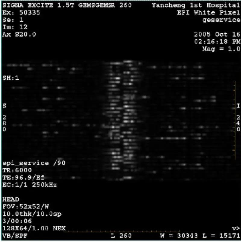 16. ถอดคอยล์ RF ของร่างกายออกจาก TRM เรียกใช้การสแกนพิกเซลสีขาวของ head EPT ผลลัพธ์ล้มเหลว